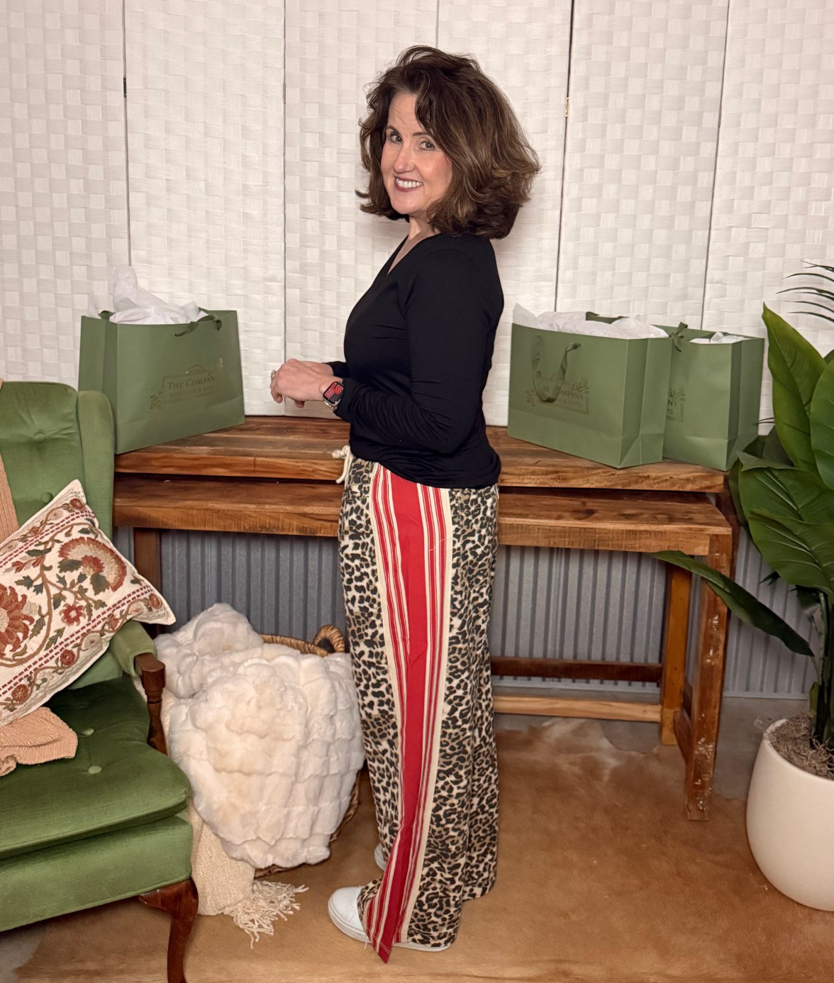 Take a walk on the wild side with these eye-catching pants — the perfect mix of bold and comfy! These leopard print pants feature a flattering drawstring waistband and eye-catching crimson side stripes that add a sporty, boutique-chic twist.