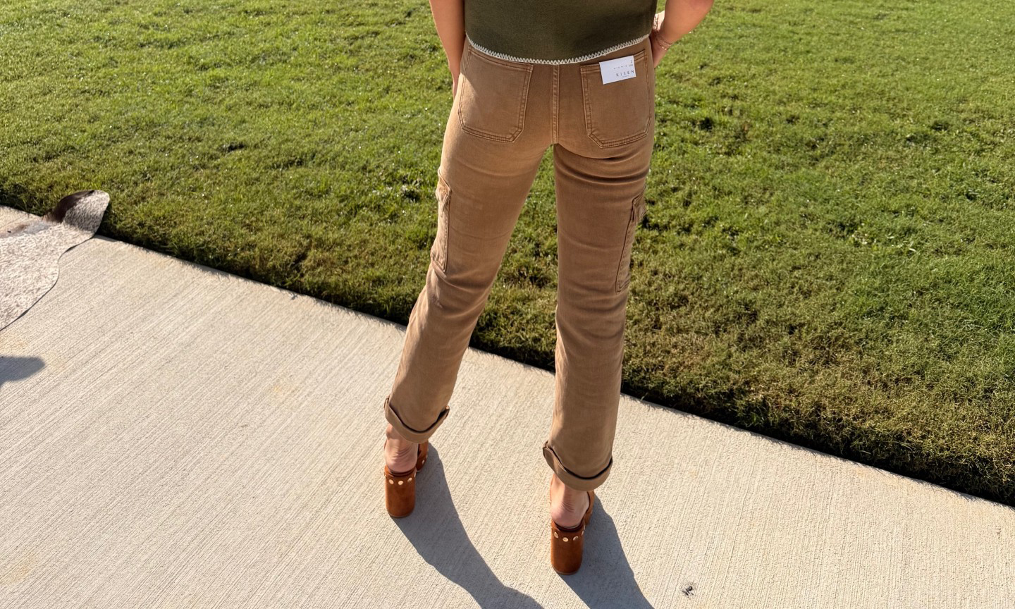Elevate your casual wardrobe with the Risen High Rise Crop Straight Cargo Rollup Slim Cocoa Jeans. Featuring a flattering high-rise fit and straight crop silhouette, these jeans combine style and comfort effortlessly. The cargo pockets add a trendy, utilitarian touch, while the rollup design gives you versatile options for a laid-back or polished look. Crafted in a rich cocoa hue, they pair perfectly with any top, making them a must-have for everyday wear that moves with you.