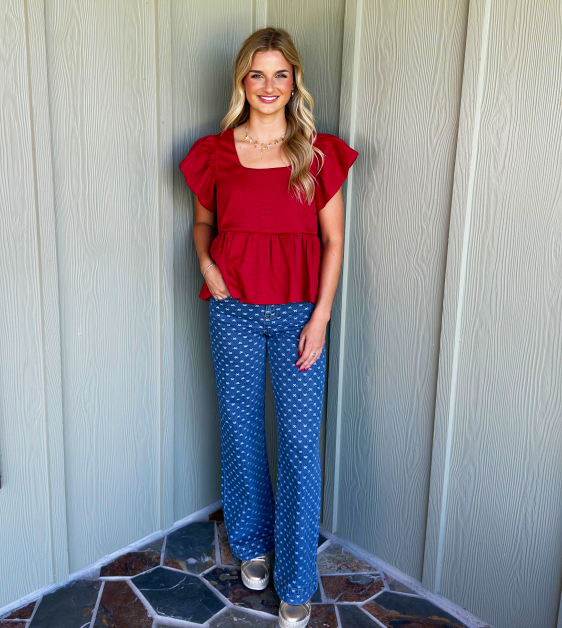 Elevate your style with the Risen High Rise Wide Leg Bow Embroidered Jeans. Featuring a flattering high-rise fit and wide-leg cut, these jeans offer both comfort and a chic silhouette. Delicately embroidered with a charming little white bow pattern, they add a subtle, playful touch to your everyday wardrobe. Perfect for making a statement while staying effortlessly stylish. Don't miss out on these great trouser jeans.