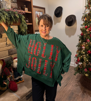BiBi Christmas Plaid Holly Jolly Oversized Fleece Sweatshirt