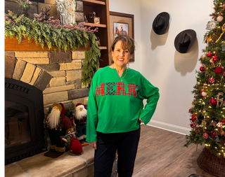 AnnieWear Christmas Lettering Patch Mineral Washed Top