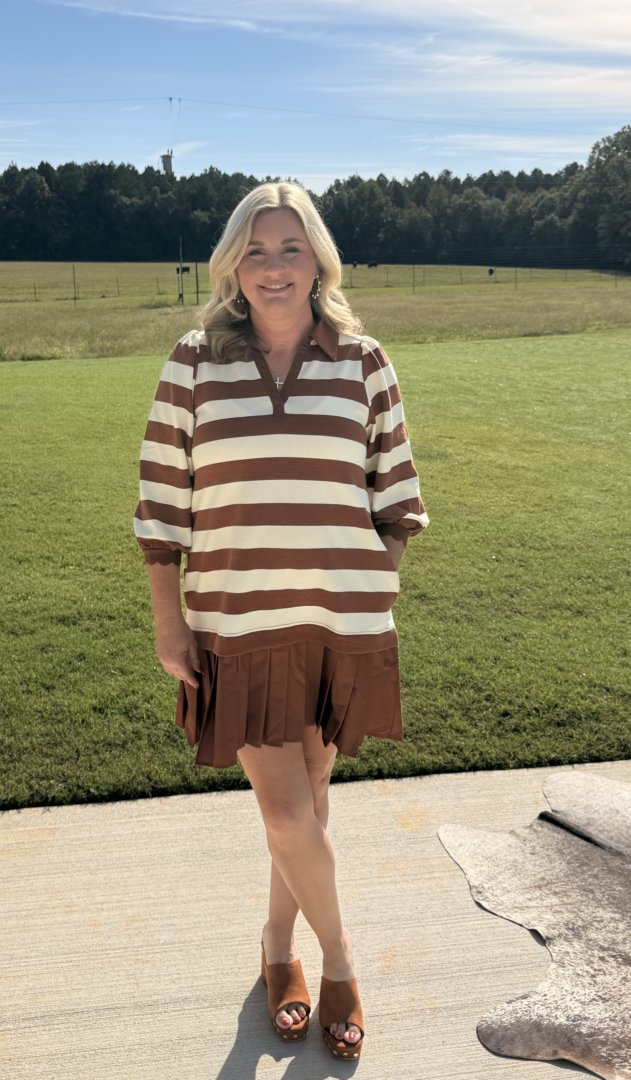 This isn’t just any striped dress—it’s a showstopper. Featuring striking chocolate-and-cream wide stripes and playful pleated accents, it’s designed for the confident girl who knows how to make an entrance. Flirty, fierce, and totally unapologetic—because why go subtle when you can stand out? Enjoy a comfy fit that lasts all day and a style that effortlessly takes you from brunch to date night. Pair it with sneakers for laid-back cool or dress it up with heels for a knockout look.