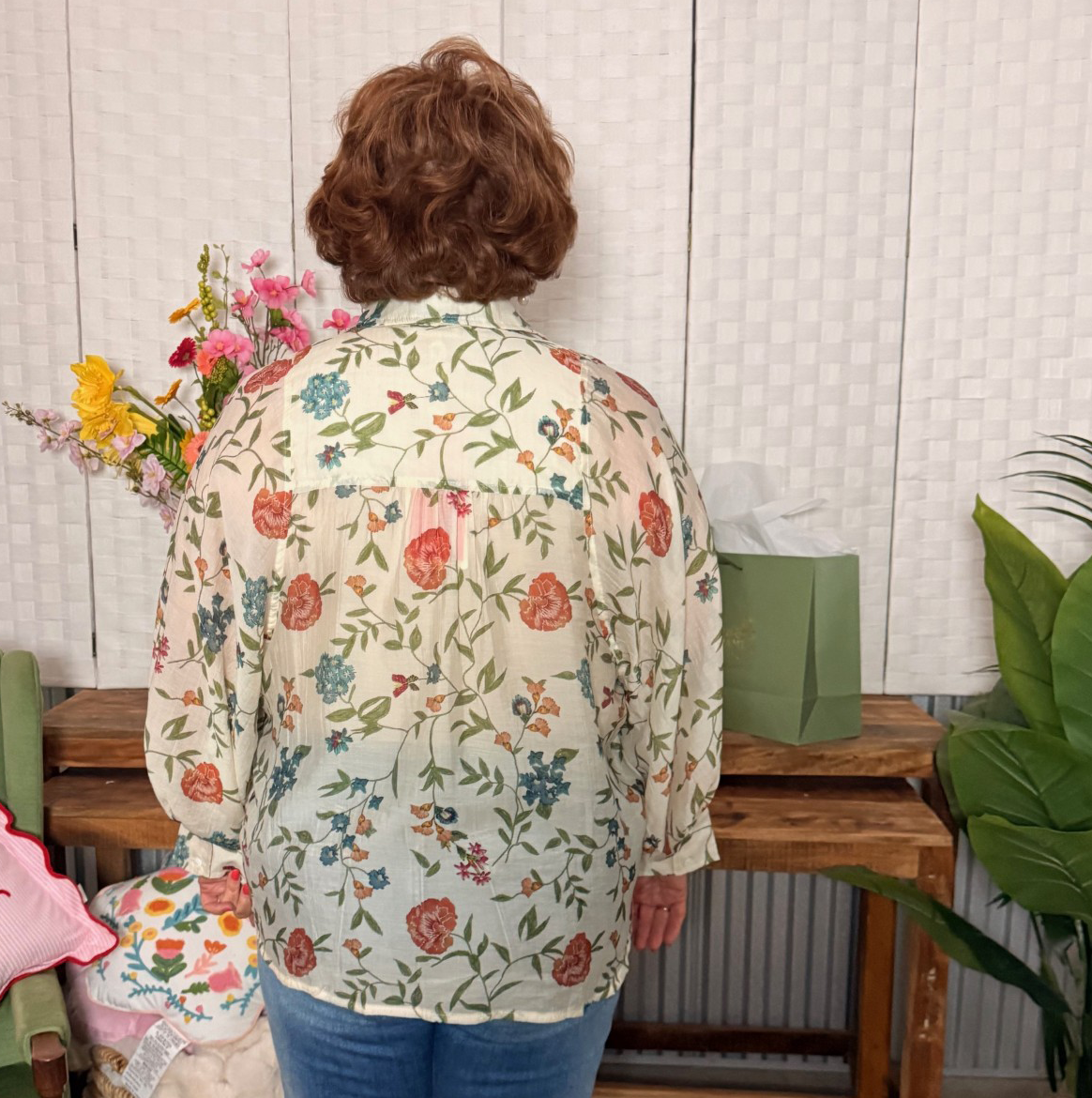Feminine and timeless, the Blossom Breeze Blouse brings soft floral charm to your everyday wardrobe. Featuring a delicate multicolor floral print on a light, airy fabric, this top is designed with a classic collar, button-front closure, and an easy, flowy fit that drapes beautifully.