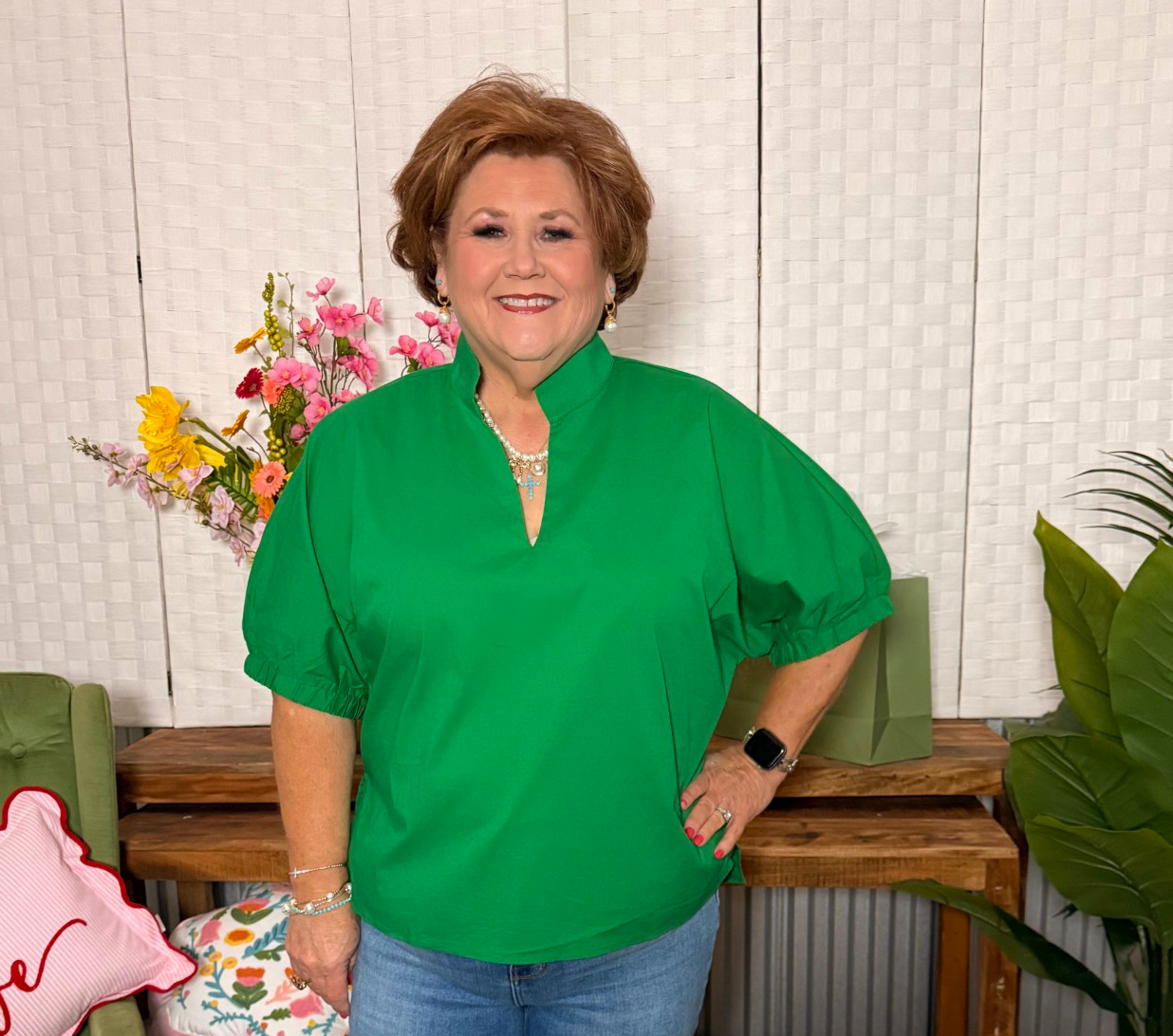 • Short sleeves with subtle gathered detail