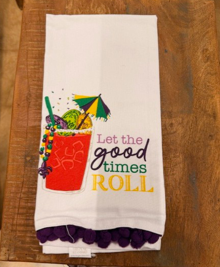 Celebrate Mardi Gras in style with the Let the Good Time Roll Hand Towel! This colorful and fun towel adds a festive touch to your kitchen or bar area, featuring vibrant designs inspired by the lively spirit of Mardi Gras and the classic Bloody Mary drink. Perfect for brightening up your space and keeping things playful while you entertain.