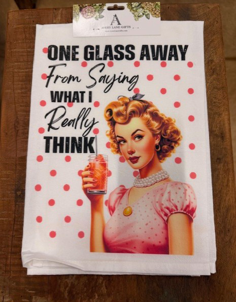 Bring a smile to your kitchen with the Avery Lane One Glass Away Tea Towel. Featuring a witty saying, this playful towel adds charm while keeping your counters clean. It's the perfect blend of practicality and humor for anyone who knows a little laughter makes every day better.