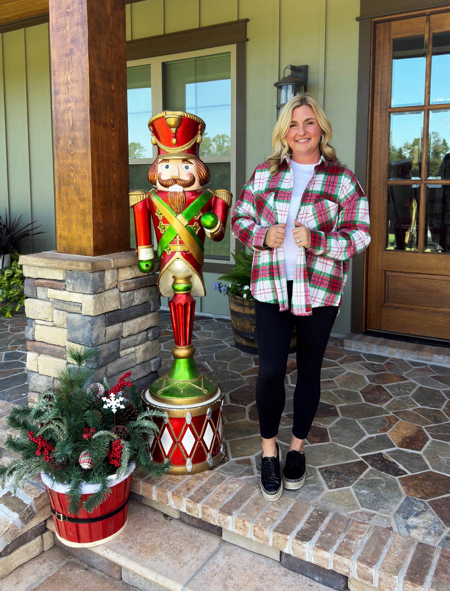Get ready to sleigh the holiday look with this playful Christmas Plaid Shacket! Featuring a festive green and red plaid design, it’s perfect for adding merry vibes to any outfit. The handy front pockets are just right for stashing holiday treats during winter adventures. Stay warm, stylish, and full of cheer all season long!