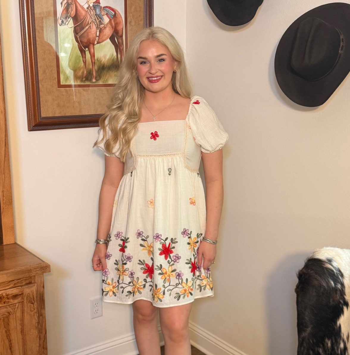 Step into the season with this delightful Easel floral embroidery dress! Featuring charming bubble sleeves that dance with every move, this piece celebrates warm-weather style with playful flair. The pristine white canvas showcases intricate floral embroidery that brings garden-inspired beauty to your everyday looks. Perfect for picnics, garden parties, or lazy summer afternoons, this dress combines comfort with whimsical charm. Embrace the joy of spring and summer dressing with a piece that's as fun as it is fabulous.