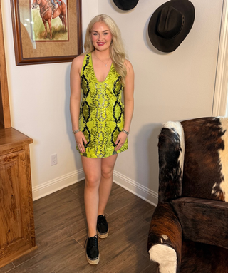 Queen of Sparkles Lime Green and Black Snake Print Full Sequin Tank Dress