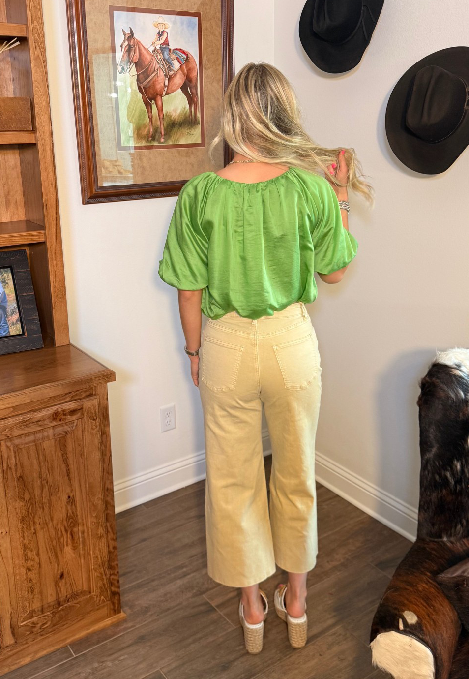 Bright, breezy, and full of personality, this THML top is made to be noticed. Designed with a softly gathered neckline and statement puff sleeves, it brings the perfect mix of feminine flair and everyday ease. The relaxed, airy shape keeps it comfortable while the bold solid colors add instant outfit energy 🍊💚