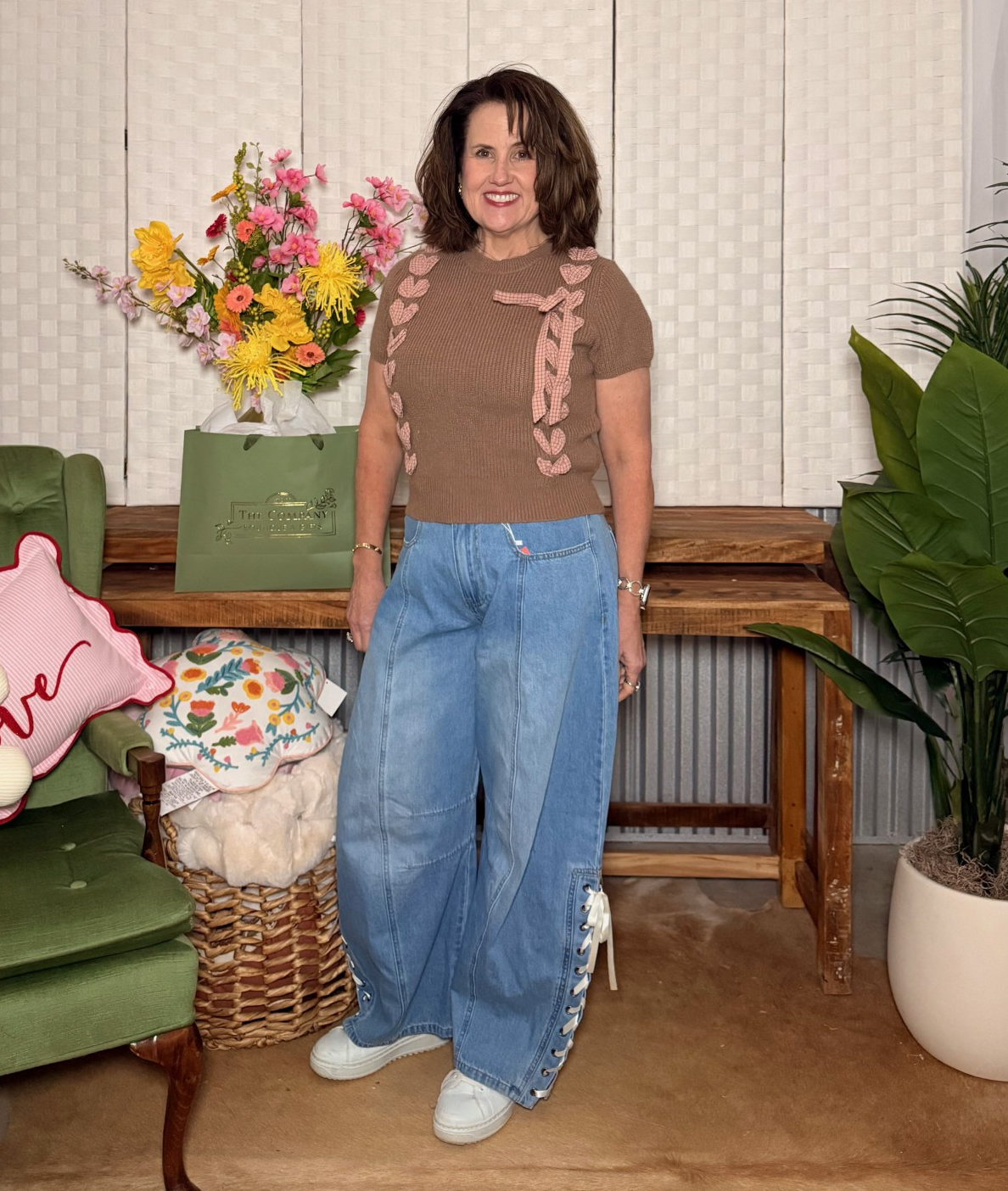 Pair with high-waisted wide-leg trousers for a chic polished look, or style with a denim skirt for a sweet and casual outfit. Add a dainty necklace and a pair of ballet flats or ankle boots to complete the vibe!