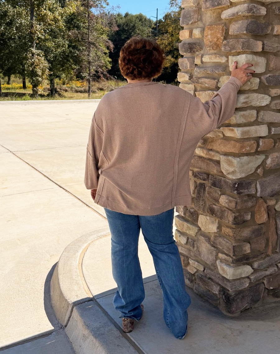 Stay warm and stylish in the Fantastic Fawn Embroidery Pumpkin thermal sweatshirt. This oversized, heather mocha favorite features a charming embroidered plaid pumpkin that adds a fun fall flair. Its cozy thermal fabric keeps you comfy on crisp days while the relaxed fit makes it perfect for layering or lounging with a smile!