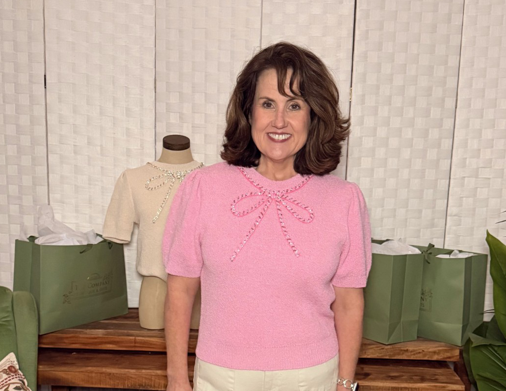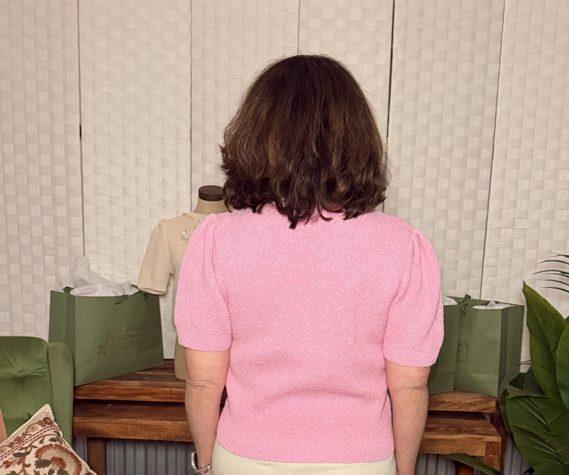 Soft, feminine, and oh-so-sweet, this knit top features a beautifully detailed jeweled bow design across the front that instantly elevates the look. The textured knit fabric gives it a luxe feel, while the short sleeves and relaxed fit keep it wearable and comfortable. It’s the perfect blend of playful detail and everyday polish.