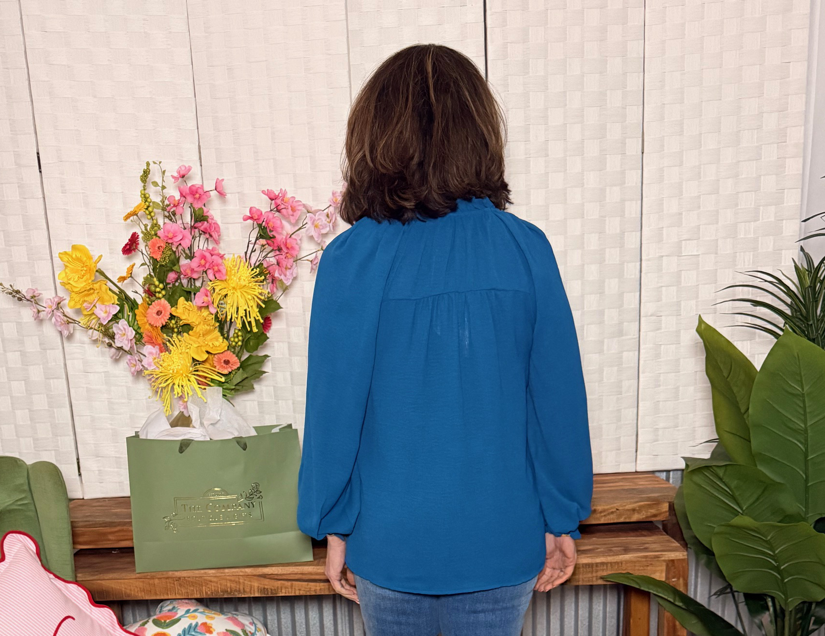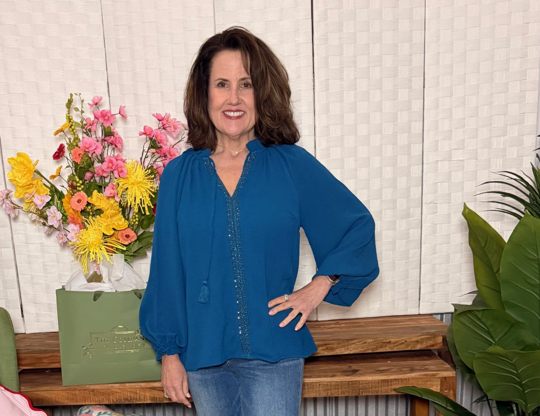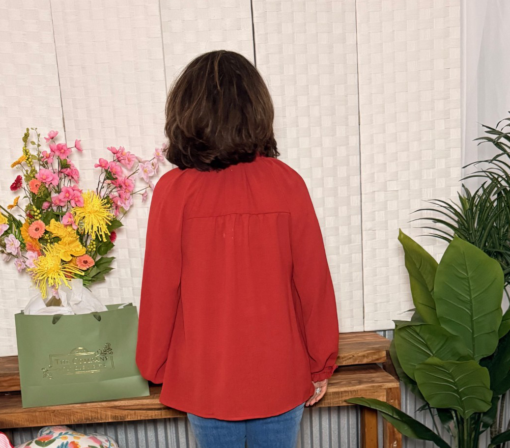 Effortlessly chic with a touch of boho charm — this beaded peasant top is a standout piece for any season. The front features beautifully detailed stitching down the center, complemented by a ruffled split neckline and tassel ties. Available in a warm rust or striking cobalt blue, it’s flowy, flattering, and full of easy elegance.