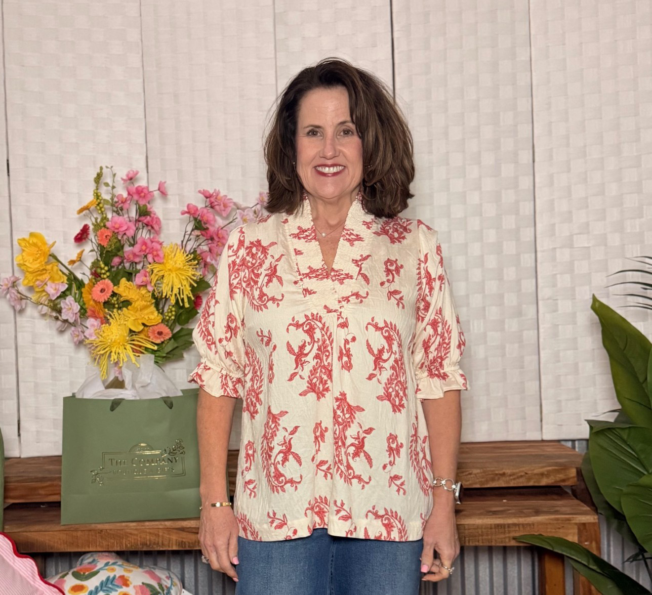 Chic, feminine, and effortlessly stylish — this floral toile blouse is the perfect blend of classic charm and modern comfort. The soft, textured fabric features a gorgeous allover print, while the smocked detail at the neckline adds a touch of handcrafted elegance. The relaxed silhouette and fluttery sleeves make it an easy, flattering fit for everyday wear.