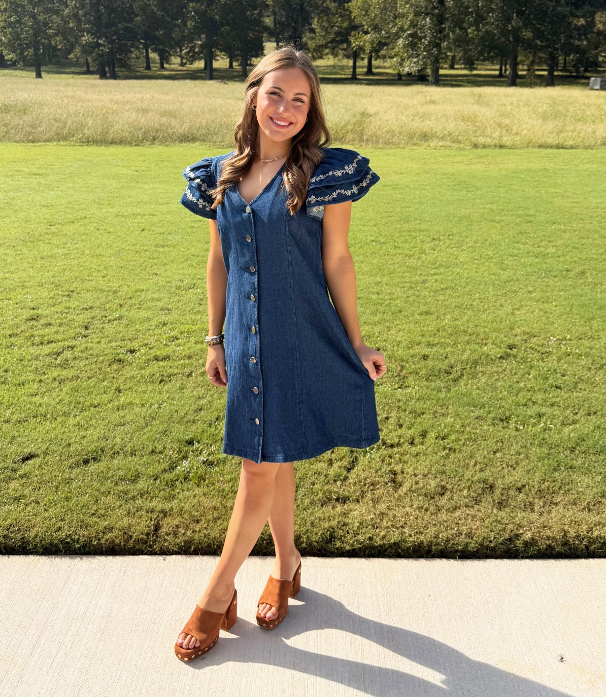 Layerz Dark Denim Dress with Ruffled Sleeves