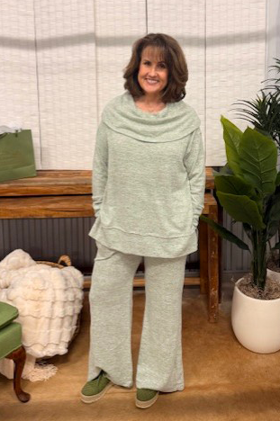 Meet the set you’ll want to live in. This two-piece lounge suit is made from ultra-soft, plush knit fabric that feels like you’re wrapped in a cloud. The relaxed cowl-neck top gives it a chic, elevated touch while the wide-leg pants keep things breezy and effortless. Perfect for cozy days at home, travel days, or easy everyday errands with style.